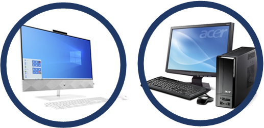 - Computador Torre + Pantalla: son los equipos más tradicionales, los cuales separa el computador de la pantalla, mayormente utilizado por los Gamers por su capacidad de cambiar componentes internos, su pantalla al ser individual normalmente están habilitados para uso con soporte VESA y permite obtener pantallas sobre las 21″, sin embargo se deben adicionar los parlantes ya que no vienen incorporados.